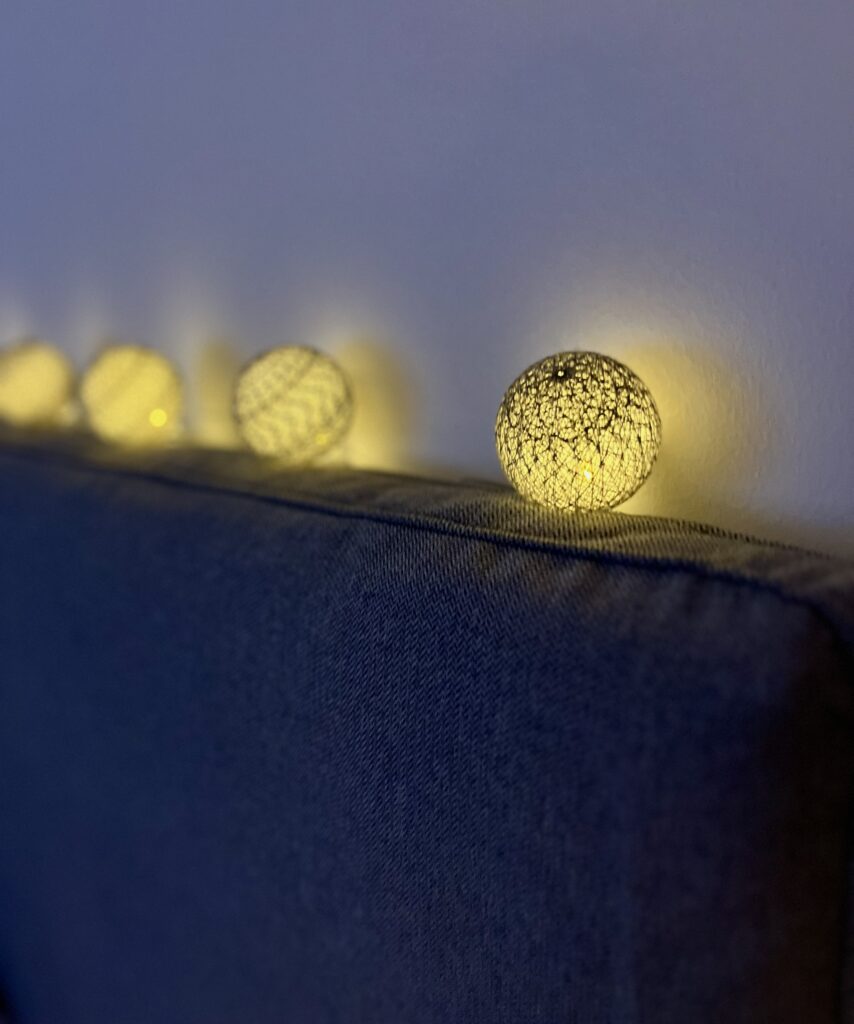 Jag älskar att ha tänt mina ljusbollar ovanför sägen på hösten och vintern då det höjer mysstämningen.
