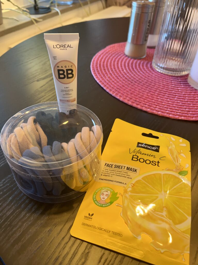 Sån bra och rymlig väska från NewYokerTofsar, ansiktsmask och en BB cream från NormalAlltså världens skönaste mjukisar från NewYoker.Myslinne från NewYokerVit gosig tröja från NewYokerEn annan myströja från NewYokerKostymbyxor från NewYoker