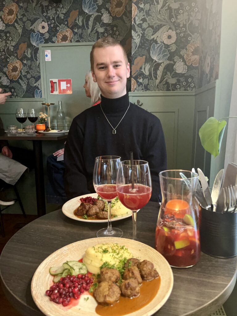 I fredags bjöd jag ut Arvid på restaurang för jag ville fira honom för att han hade klarat sin första vecka på sitt nya jobb så bra. Jag tänkte ta honom till Mocca Deli – ett av vårt favvo ställe men det var ju fullt med folk, såklart det var, det var ju fredag, så vi gick till restaurangen Hem till Linda istället, där har vi varit en gång innan och tyckt om både mat och personal. Där var det också fullt men vi fick ett litet tvåsittsbord så där hade vi tur. Vi båda tog varsin chevrepizza vilket var gott.