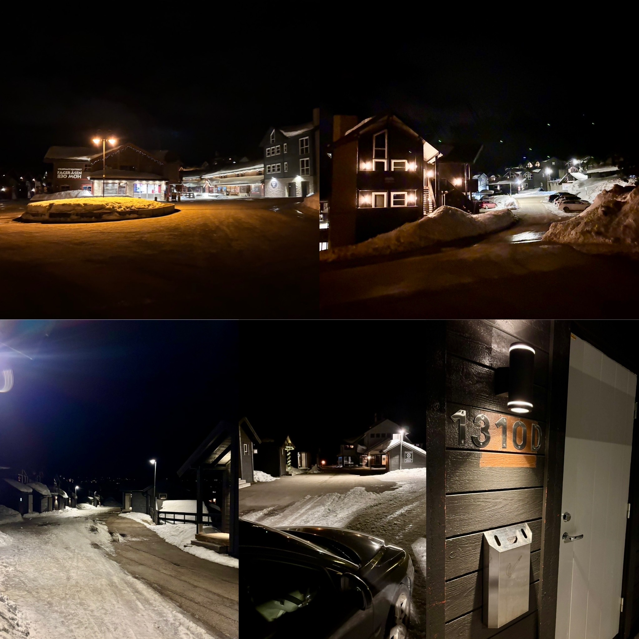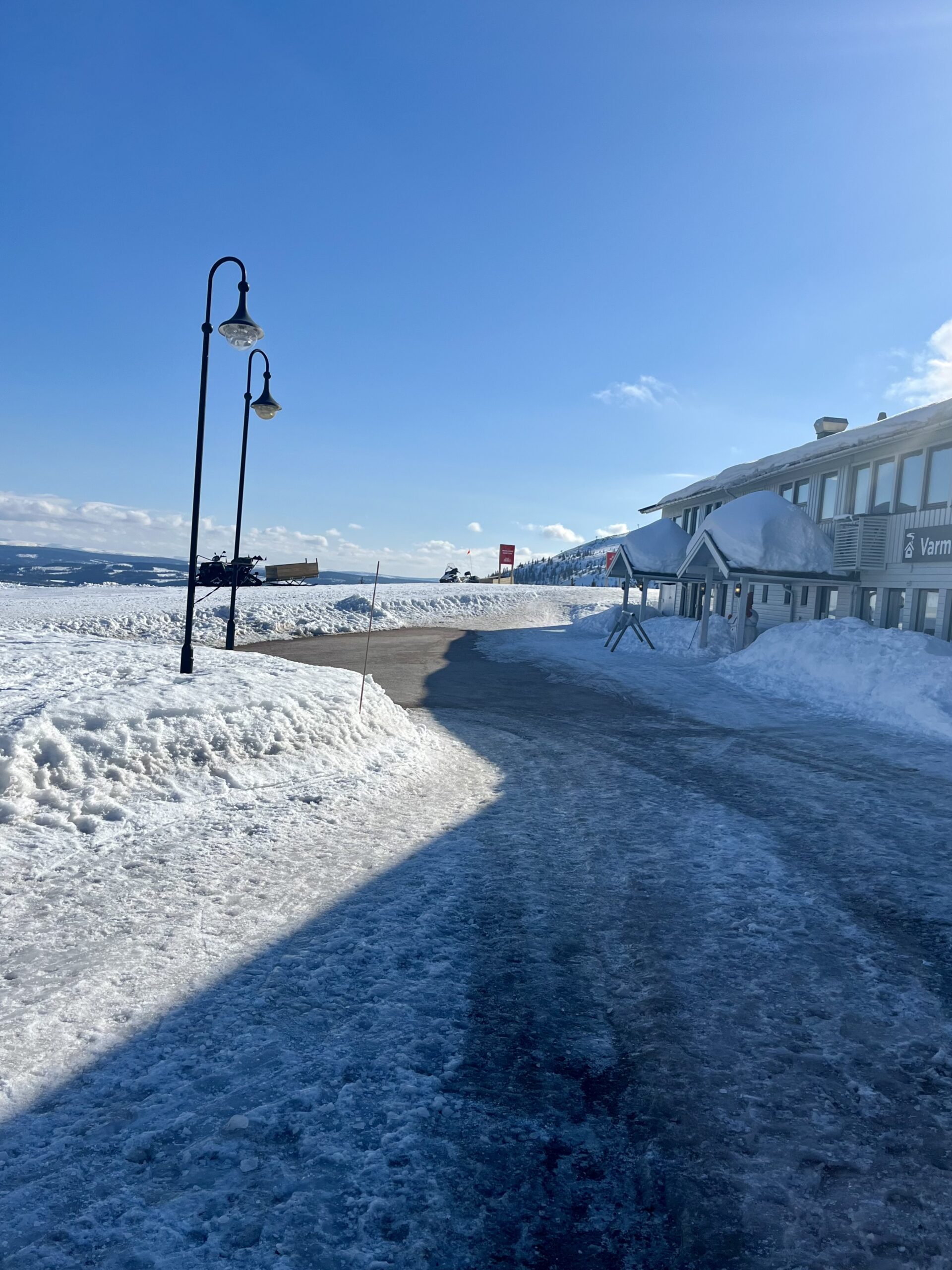 Men något spår av snö syntes inte till, inte ens när vi närmade oss Trysil vilket var märkligt, men efter en stund, helt plötsligt, i mörkret såg vi jättemycket snö i skogarna och vi hade ingen aning om när det hade börjat, vilket var lite coolt.