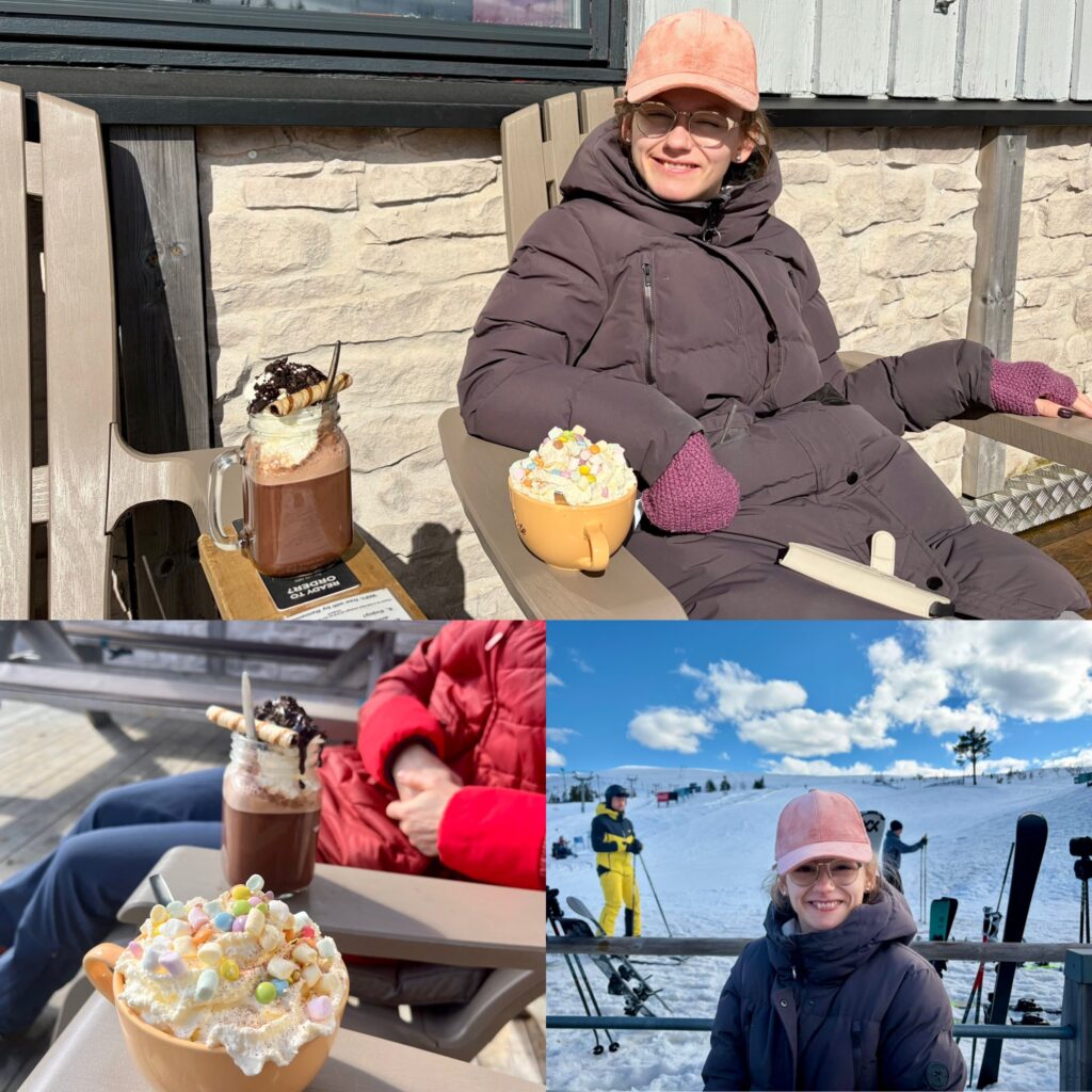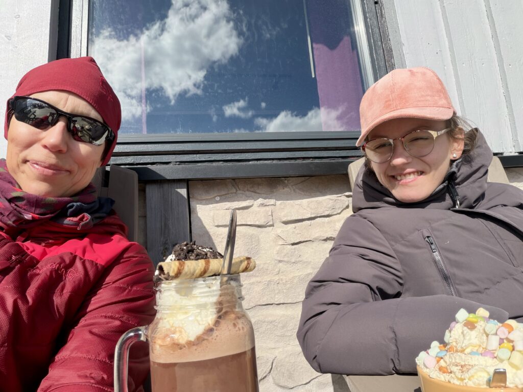 Då bestämde hans mamma Maria och jag att vi skulle ta en fika nere på cafét. Jag och Arvid hade sett goda varm choklad drinkar där innan på våran lilla tur som vi tänkte testa, men eftersom att det bestämdes att Arvids skulle åka skidor på eftermiddagen blev det Maria och jag som fick testa de ihop, vilket också skulle bli mysigt.