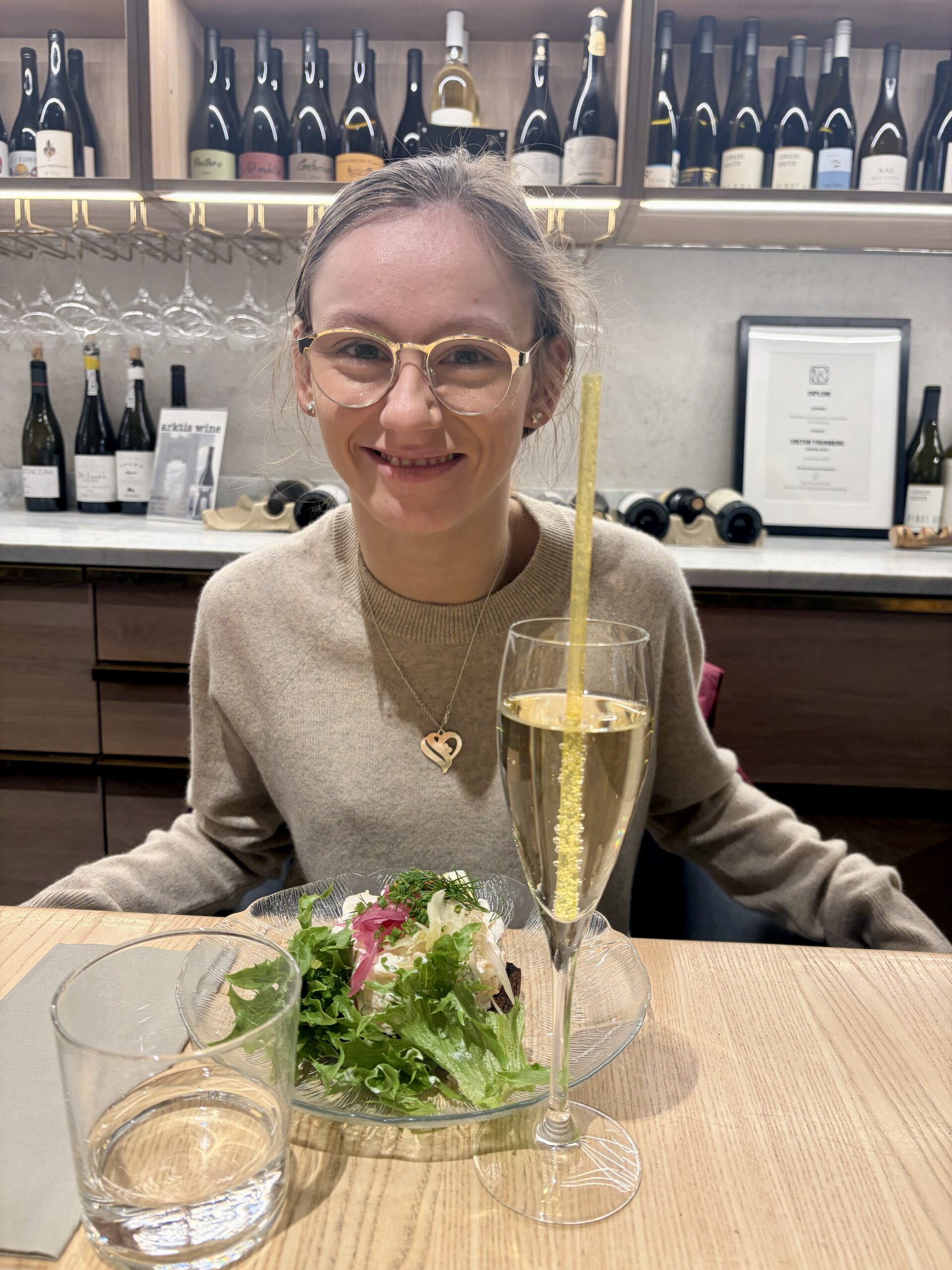 Jag hade bokat bord på La Copita på kvällen för att fira, så lite innan klockan 18 åkte vi taxi till La Copita så vi båda kunde ta ett glas. Det är så himla bra och smidigt att Arvid kan följa med mig i färdtjänsten.