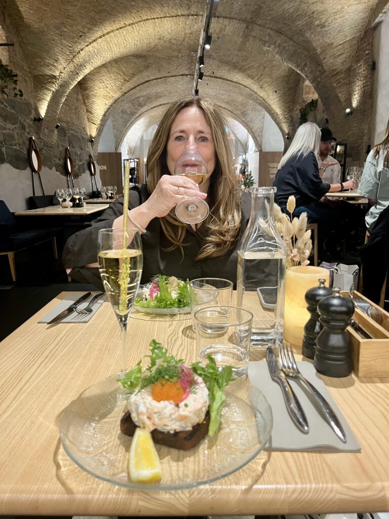 Efter att jag provat och köpt min egna lyxiga kashmirtröja avslutade vi vår härliga shoppingdag med en lunch på ett jättemysigt och lyxigt lunchställe inne på NK där vi tog varsin räkmacka med ett glas bubbel till, så god och mysig lunch med härliga samtal.